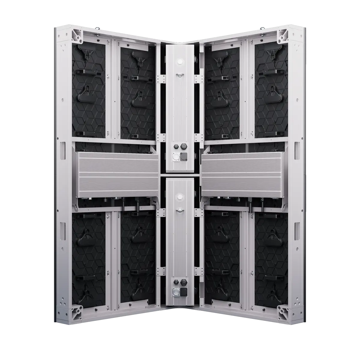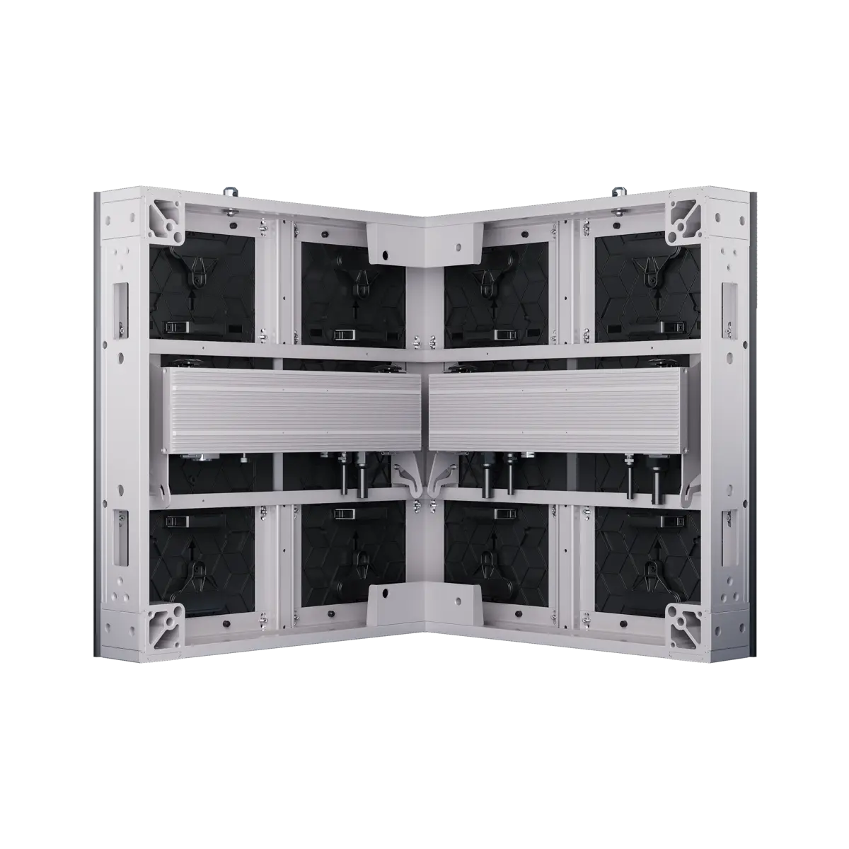 AQ Series cabinets can be installed in both flat and right-angle configurations, making them ideal for corner displays and architectural screen layouts. This capability allows LED displays to wrap seamlessly around structural features without compromising image alignment.